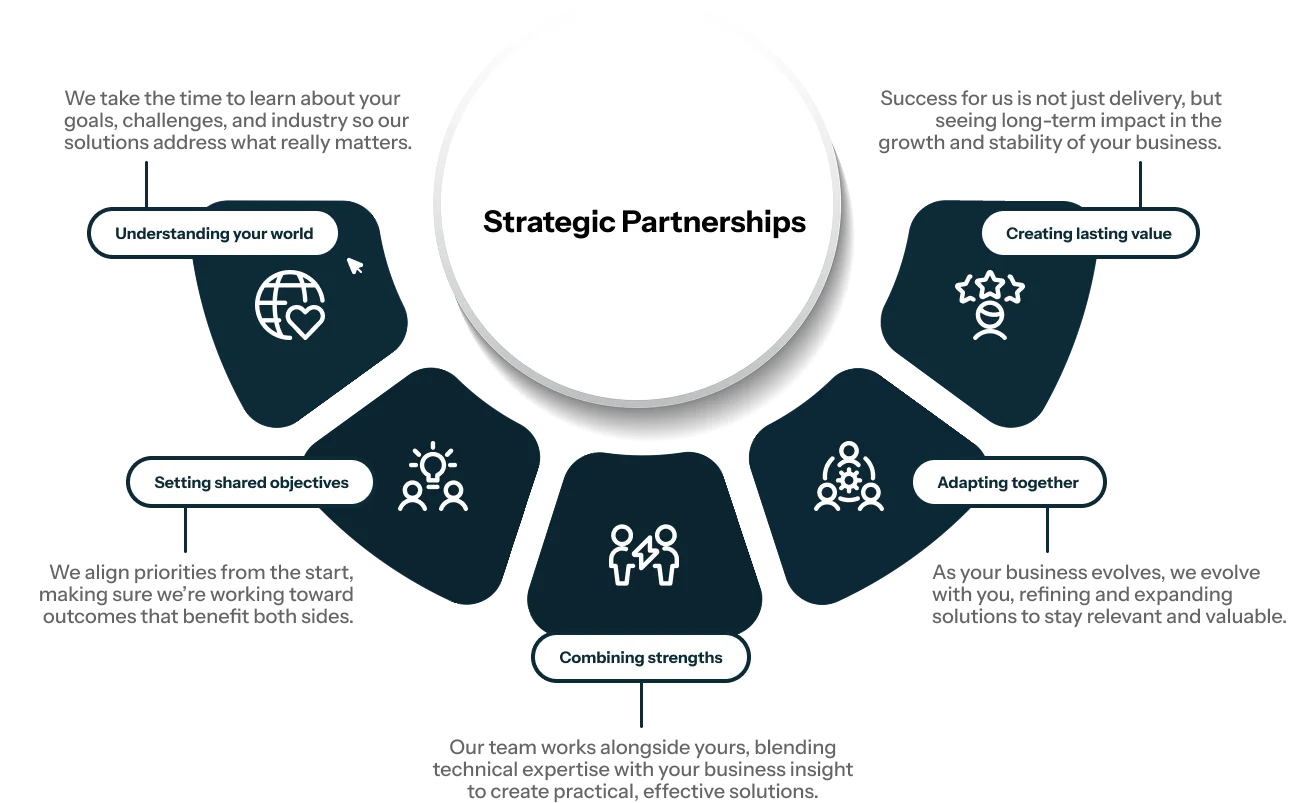 Our team works alongside yours, blending technical expertise with your business insight to create practical, effective solutions.